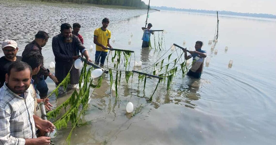 বাংলাদেশের উপকূলীয় অঞ্চলগুলোতে জলবায়ু পরিবর্তনের প্রভাব দিনদিন বেড়েই চলেছে। লবণাক্ততা, ঘূর্ণিঝড়, এবং মাছের সম্পদের হ্রাসের কারণে স্থানীয় মানুষজনের জীবিকা ঝুঁকির মুখে পড়েছে। তবে এই সংকটের মধ্যেই জেগে উঠেছে এক সম্ভাবনাময় নতুন পথ—সামুদ্রিক শৈবাল চাষ। পটুয়াখালী বিজ্ঞান ও প্রযুক্তি বিশ্ববিদ্যালয়ের মাৎস্যবিজ্ঞান অনুষদ, ফিশারিজ বায়োলজি অ্যান্ড জেনেটিক্স ডিপার্টমেন্ট এবং AIRD সংস্থা যৌথভাবে উদ্যোগ গ্রহণ করেছে ‘পাইলটিং স্মল স্কেল ম্যাক্রোঅ্যালগি কালচার ফর আমেলিওরেটিং লিভলিহুড অফ কোস্টাল কমিউনিটিস অ্যান্ড এড্রেসিং কার্বন ডাই অক্সাইড রেমিডেশন’ নামে এক প্রকল্পের মাধ্যমে। এই উদ্যোগ অর্থনৈতিক মুক্তির পাশাপাশি জলবায়ু সংকট মোকাবেলায় গুরুত্বপূর্ণ অবদান রাখতে পারে।