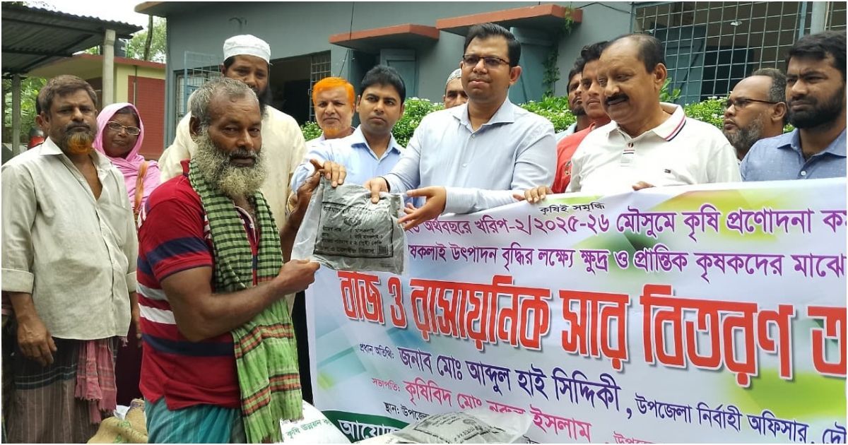 কুষ্টিয়ার দৌলতপুরে ২০২৫-২৬ অর্থবছরের খরিপ-২ মৌসুমে ক্ষুদ্র ও প্রান্তিক কৃষকদের জন্য কৃষি প্রণোদনা কর্মসূচির আওতায় বিনামূল্যে বীজ ও রাসায়নিক সার বিতরণ করা হয়েছে। এই উদ্যোগের মাধ্যমে মাসকলাই চাষে উৎপাদন বৃদ্ধির লক্ষ্য নির্ধারণ করা হয়।