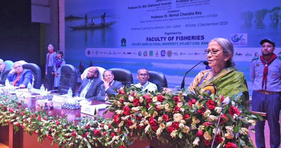 শুক্রবার সিলেট কৃষি বিশ্ববিদ্যালয়ের (সিকৃবি) কেন্দ্রীয় অডিটোরিয়ামে মৎস্যবিজ্ঞান অনুষদের আয়োজনায় তিন দিনব্যাপী তৃতীয় আন্তর্জাতিক সম্মেলন ফর সাসটেইনেবল ফিশারিজের (আইসিএসএফ) উদ্বোধনী অনুষ্ঠানে প্রধান অতিথির ভাষণে তিনি এ কথা বলেন। এই সম্মেলনের মূল লক্ষ্য হলো টেকসই মৎস্য ব্যবস্থাপনা এবং গবেষণার উন্নয়ন, উদ্ভাবনী প্রযুক্তি ভাগাভাগি ও অংশীজনদের মধ্যে সমন্বয় বৃদ্ধি।