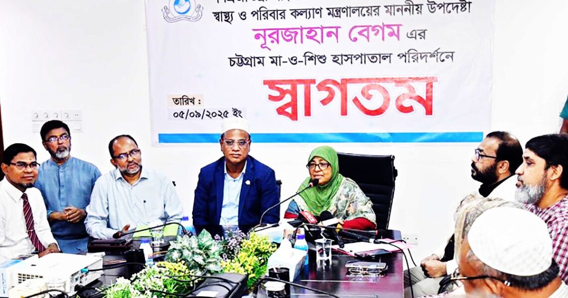 স্বাস্থ ও পরিবার কল্যাণ উপদেষ্টা নূরজাহান বেগম বলেছেন, দলীয় মতের ঊর্ধ্বে উঠে চিকিৎসকদের মানবিকতা ও দায়িত্বশীলতা প্রদর্শন করতে হবে। রোগীদের প্রতি মানবিক আচরণ ও সেবা প্রদানই তাঁদের পেশাগত দায়িত্ব। তিনি এ কথাগুলো শুক্রবার চট্টগ্রামের আগ্রাবাদে মা ও শিশু হাসপাতাল পরিদর্শনকালে কর্মরত কর্মকর্তা-কর্মচারীদের সঙ্গে এক মতবিনিময় সভায় বলেন। ওই অনুষ্ঠানে হাসপাতালের কনফারেন্স কক্ষে নানা আলোচনা ও মতবিনিময় অনুষ্ঠিত হয়।