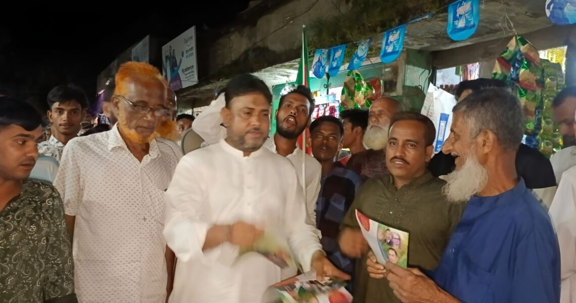 ফুলবাড়িয়ায় বিএনপি নেতার লিফলেট বিতরণ ও গণসংযোগ