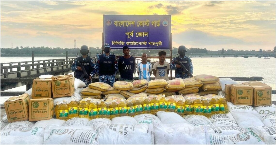 বাংলাদেশ কোস্ট গার্ড মায়ানমার থেকে পণ্যসামগ্রী ব্যবহার করে মাদক চোরাচালানের সময় বিরাট পরিমাণ সম্পদসহ তিনজন পাচারকারীকে আটক করেছে। রবিবার ২১ সেপ্টেম্বর ২০২৫ তারিখে দুপুরে কোস্ট গার্ডের মিডিয়া কর্মকর্তা লেফটেন্যান্ট কমান্ডার সিয়াম-উল-হক এই খবর নিশ্চিত করেন।