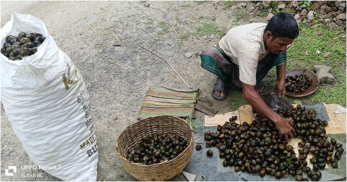 ভারতীয় শহরগুলো থেকে আসা পাইকাররা এই শামুকের দর কষাকষি করে কেজিতে ৫০ থেকে ৬০ টাকা বিক্রি করছে। একদিকে, এই শামুকের মাধ্যমে প্রচুর দরিদ্র পরিবার কিছুটা অর্থ উপার্জন করছে। আবার, চুন কারখানার মালিকরাও এই শামুকের মাংস ও ঝিনুকের খোসা ছাঁটাই করে বিভিন্ন কাজে ব্যবহার করে থাকেন।