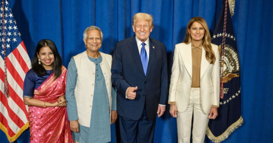 প্রধান উপদেষ্টা অধ্যাপক মুহাম্মদ ইউনূস এবং তাঁর কন্যা দিনা ইউনূস ২৩ সেপ্টেম্বর যুক্তরাষ্ট্রের প্রেসিডেন্ট ডোনাল্ড ট্রাম্পের আয়োজিত এক বিশেষ সংবর্ধনা অনুষ্ঠানে উপস্থিত ছিলেন। এই অনুষ্ঠানে তারা প্রিয় প্রেসিডেন্ট ট্রাম্পের সাথে সাক্ষাৎ করেন এবং বাংলাদেশে সফরের জন্য একটি সুবিধাজনক সময়ে আমন্ত্রণ জানান। সংবর্ধনা অনুষ্ঠানে তারা প্রেসিডেন্ট ট্রাম্প ও ফার্স্ট লেডি মেলানিয়া ট্রাম্পের সাথে হাসিমুখে ছবি তোলেন। এই স্মরণীয় মুহূর্তের ছবি পরে প্রধান উপদেষ্টার ভেরিফায়েড ফেসবুক পেজে প্রকাশ করা হয়। বর্তমানে, অধ্যাপক ইউনূস জাতিসংঘের সাধারণ পরিষদের ৮০তম অধিবেশনে অংশগ্রহণের জন্য যুক্তরাষ্ট্রে অবস্থান করছেন।