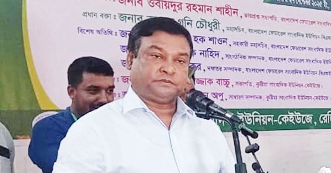 বাংলাদেশ ফেডারেল সাংবাদিক ইউনিয়নের মহাসচিব কাদের গনি চৌধুরী বলেছেন, পেশাজীবীদের মধ্যে সবচেয়ে বেশি নীতি সচেতনতা দেখা যায় সাংবাদিকদের মধ্যে। যদি এই নীতিমালা না মানা হয়, তাহলে সমাজ টিকতেই পারে না। সাংবাদিকরা অসীম চাপের মধ্য দিয়ে অনেক বাধা-বিপত্তি পেরিয়ে জাতির সামনে সত্যকে তুলে ধরতে সচেষ্ট থাকেন। শনিবার কুষ্টিয়া জেলা শিল্পকলা একাডেমি ভবনের সভা কক্ষে অনুষ্ঠিত কুষ্টিয়া সাংবাদিক ইউনিয়নের (কেইউজে) সাধারণ সভায় প্রধান বক্তার ভাষণে তিনি এসব কথা বলেন।