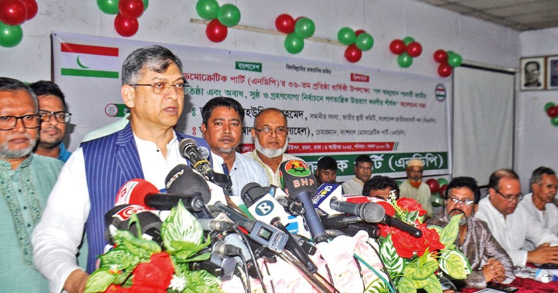 শনিবার রাজধানীর রমনায় ইঞ্জিনিয়ার্স ইনস্টিটিউশন মিলনায়তনে জাতীয়তাবাদী সমমনা জোটের অন্তর্ভুক্ত ন্যাশনাল ডেমোক্র্যাটিক পার্টির (এনডিপি) ৩৭তম প্রতিষ্ঠাবার্ষিকী উপলক্ষে আয়োজিত আলোচনাসভায় প্রধান অতিথির বক্তব্যে এসব কথা বলেন তিনি।