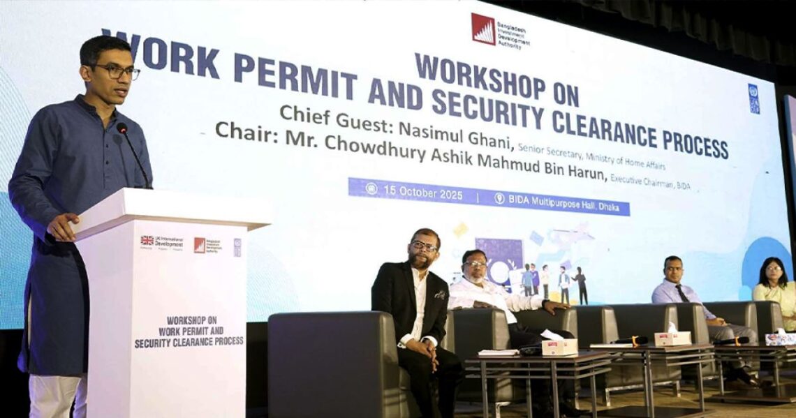 বাংলাদেশ বিনিয়োগ উন্নয়ন কর্তৃপক্ষের (বিডা) নির্বাহী চেয়ারম্যান চৌধুরী আশিক মাহমুদ বিন হারুন বলেছেন, সরকার ভিসা ফি প্রদানের প্রক্রিয়াকে ডিজিটালাইজড করে তুলছে এবং সামগ্রিক ভিসা নীতিমালা সংশোধনের মাধ্যমে গুরুত্বপূর্ণ পদক্ষেপ নিচ্ছে। তিনি জানান, বর্তমানে এই ডিজিটালাইজেশন কাজটি চলছে। এর ফলে আবেদনকারীরা এখন ঘরে বসেই অনলাইনে ভিসা ফি পরিশোধ করতে পারবেন, যাতে শারীরিকভাবে কোথাও যেতে হবে না। এই সংস্কারটির মাধ্যমে ভিসা ফি পরিশোধের প্রক্রিয়া সহজ, দ্রুত এবং ঝামেলামুক্ত হবে বলে তিনি আশাবাদ ব্যক্ত করেন। বুধবার রাজধানীর বিডা মিডিয়া মিলনায়তনে ‘ওয়ার্ক পারমিট ও সিকিউরিটি ক্লিয়ারেন্স প্রসেস’ বিষয়ক এক কর্মশালায় তিনি এসব কথা বলেন। মাহমুদ বলেন, সরকার ভিসা নীতিমালার ক্ষেত্রে ব্যাপক পরিবর্তনও চালাচ্ছে, যার মূল লক্ষ্য হলো দীর্ঘদিনের বিভিন্ন সমস্যা সমাধান করা। তিনি জানান, ১ অক্টোবর থেকে অনলাইন সিকিউরিটি ক্লিয়ারেন্সের প্রক্রিয়া চালু হয়েছে। আগে যেখানে ৩৪টি নথি জমা দিতে হতো, এখন তা কমে ১১টিতে আনা হয়েছে। এটি একটি বড় অর্জন, কারণ এর ফলে দপ্তরগুলোতে বিভিন্ন নির্দেশনা অনুসারে নানা দাপ্তরিক কাজ সহজ হয়েছে। বিডা চেয়ারম্যান আরও বলেন, ‘সরকারের অন্যান্য কার্যক্রমের মতোই আমাদের লক্ষ্য হলো জাতীয় নিরাপত্তা সংক্রান্ত বিষয়গুলো কোনোভাবেই জটিলতা সৃষ্টি না করে। আমরা এমন কিছু করব না যাতে জাতীয় নিরাপত্তা প্রশ্নের মুখে পড়ে বা কোনো আপসের সুযোগ তৈরি হয়। স্বরাষ্ট্র মন্ত্রণালয় ও বিডার দায়িত্ব একই, আমরা সবাই এক লক্ষ্য নিয়ে কাজ করছি।’ তিনি আরও যোগ করেন, ‘আমাদের মূল লক্ষ্য হলো— সবাই যেন একত্রিতভাবে কাজ করে সমস্যা সমাধানে মনোযোগী হন এবং জাতীয় স্বার্থের উপর গুরুত্ব দেন।’ এই কর্মশালায় জাতীয় নিরাপত্তা গোয়েন্দা সংস্থা (এনএসআই), স্পেশাল ব্রাঞ্চ (এসবি), স্বরাষ্ট্র মন্ত্রণালয় এবং বিডা তাদের নিজ নিজ কার্যক্রম উপস্থাপন করেন। আমন্ত্রিত অতিথির মধ্যে স্বরাষ্ট্র মন্ত্রণালয়ের অতিরিক্ত সচিব মো. দেলোয়ার হোসেন ও বিডা মহাপরিচালক মো. আরিফুল হক উপস্থিত ছিলেন। আরিফুল হক জানান, আলোচনা করা হয় এনএসআই, ইমিগ্রেশন ও পাসপোর্ট অধিদপ্তরসহ অন্যান্য সংশ্লিষ্ট সংস্থাগুলোর তথ্য ও চ্যালেঞ্জ। তিনি বলে, ‘সব সংস্থা একই পরিবারের সদস্যের মতো একত্রে কাজ করছে এবং এক লক্ষ্য রয়েছে।’ তিনি কর্মকর্তাদের ধৈর্য্য ও অভিজ্ঞতা শেয়ার করার আহ্বান জানিয়ে বলেন, ‘এগুলি গুরুত্বপূর্ণ কারণ এই তথ্যগুলো পরবর্তী সিদ্ধান্ত গ্রহণে সহায়ক হবে।’