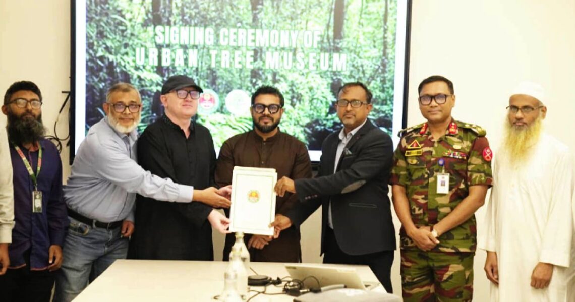 ঢাকা উত্তর সিটি করপোরেশনের (ডিএনসিসি) উদ্যোগে এবং গ্রিন সেভার্স ও ডেল্টা ডট লিমিটেডের সহযোগিতায় রাজধানীতে গড়ে উঠছে দেশের প্রথম ‘আরবান ট্রি মিউজিয়াম’ ও ‘বৃক্ষ সেবা ও ছাদবাগান সহায়তা কেন্দ্র’। গতকাল বুধবার গুলশান নগর ভবনে এই তিন সংস্থার মধ্যে এক চুক্তিপত্র স্বাক্ষরিত হয়। অনুষ্ঠানে প্রধান অতিথি হিসেবে উপস্থিত ছিলেন ডিএনসিসি প্রশাসক মোহাম্মদ এজাজ, যিনি বলেন, এই আরবান ট্রি মিউজিয়াম এবং বৃক্ষ সেবা ও ছাদবাগান সহায়তা কেন্দ্র নগরের মানুষের কাছে প্রকৃতি জ্ঞান ও টেকসই বৃক্ষচর্চা শিখবে এবং গাছের যত্নের মাধ্যমে নিজের জীবনেও পরিবেশের জন্য দায়িত্ববোধ বৃদ্ধি করবে। এটি একটি নতুন অধ্যায় শুরু করবে নগরীর সবুজায়ন, বৃক্ষ সংরক্ষণ ও নাগরিক সচেতনতার ক্ষেত্রে। আয়োজকদের মতে, ‘আরবান ট্রি মিউজিয়াম’-এ ঢাকার বিলুপ্তপ্রায় ও দেশীয় বৃক্ষপ্রজাতির সমৃদ্ধ সংগ্রহ থাকবে। এটি শুধু একটি প্রদর্শনী কেন্দ্র নয়, এখানে গবেষণা, শিক্ষা ও বিনোদনের সুযোগও থাকবে, যাতে নগরবাসী প্রকৃতির সঙ্গে আরও ঘনিষ্ঠ হয়ে উঠতে পারেন। মিউজিয়ামটি নগর বনায়ন ও পরিবেশের জন্য এক আদর্শ উদাহরণ হয়ে দাঁড়াবে, যার মাধ্যমে নাগরিকেরা সবুজের গুরুত্ব ও দায়িত্ববোধে উদ্বুদ্ধ হবে। অন্যদিকে, গুলশানের শহীদ তাজউদ্দিন আহমদ স্মৃতি পার্কে ডিএনসিসি ও গ্রিন সেভার্স যৌথভাবে গড়ে তুলছে ‘বৃক্ষ সেবা ও ছাদবাগান সহায়তা কেন্দ্র’। এই কেন্দ্রের মাধ্যমে নাগরিকরা তাদের আক্রান্ত বা অস্বাভাবিক গাছের পাতা, ফল বা মাটির নমুনা নিয়ে বিশেষজ্ঞদের পরামর্শ নিতে পারবেন। সেখানে থাকবে ‘ট্রি হসপিটাল’, প্ল্যান্ট ফার্মেসি ও ল্যাবরেটরি, যেখানে জৈব বিশ্লেষণ, মাটির উপযোগিতা পরীক্ষা, কীটপতঙ্গ শনাক্তকরণ এবং প্রয়োজনীয় ওষুধ ও উদ্ভিদের অণুখাদ্য সরবরাহের ব্যবস্থা থাকবে। এই উদ্যোগটি পরিবেশের উন্নয়ন ও সচেতনতায় গুরুত্বপূর্ণ ভূমিকা রাখবে এবং নাগরিকদের সবুজের প্রতি আরও আগ্রহী করে তুলবে।