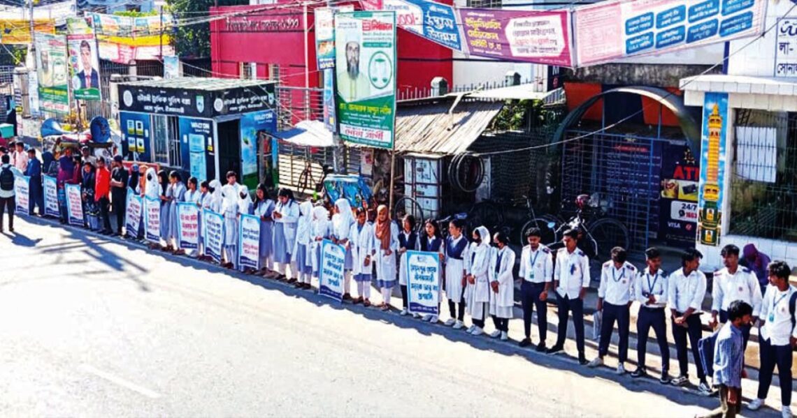নীলফামারী-সৈয়দপুর সড়কে ৪ লেনের দাবিতে মানববন্ধন