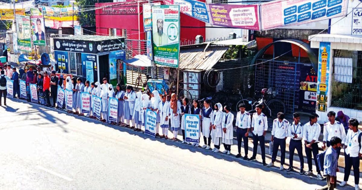 অন্যদিকে, মানববন্ধনের এক অনুষ্ঠানে ইয়েস দলের নেতা ফারজানা আক্তার আরিফা দুর্ঘটনা প্রতিরোধে ১১ দফা দাবি উপস্থাপন করেন। তিনি উল্লেখ করেন, সড়কপথে সুশাসনের অভাব, অপরাধীদের দৃষ্টান্তমূলক শাস্তির অনুপস্থিতি এবং কার্যকর মনিটরিং না থাকার কারণে দুর্ঘটনা যেন আশঙ্কাজনকভাবে বৃদ্ধি পাচ্ছে। বক্তারা আরও জোর দিয়ে বলেন, এই সমস্যা সমাধানের জন্য দ্রুত কার্যকর ব্যবস্থা গ্রহণ করা না হলে দুর্ঘটনা কমানো সম্ভব নয়।