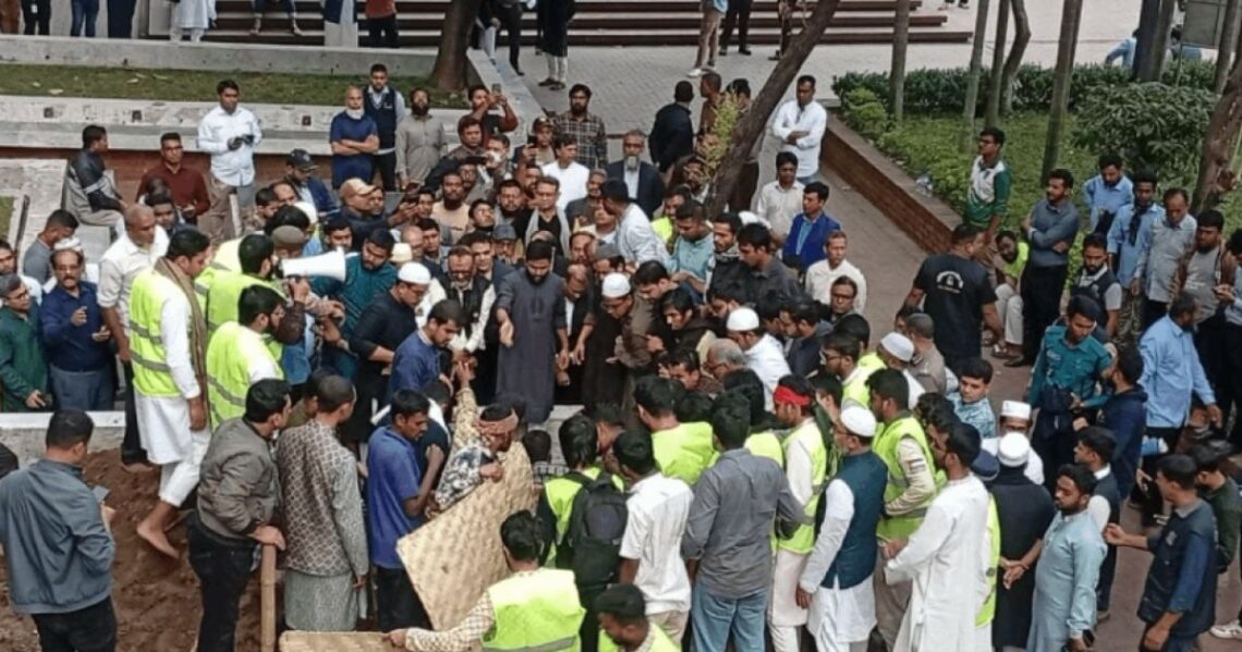 এর আগে, বেলা ৩টার দিকে হাদির মরদেহ বহনকারী অ্যাম্বুলেন্স জাতীয় সংসদ ভবন এলাকা থেকে ঢাকা বিশ্ববিদ্যালয় কেন্দ্রীয় মসজিদ প্রাঙ্গণে পৌঁছায়। সেখানে এক শোকাবহ পরিবেশের সৃষ্টি হয়।