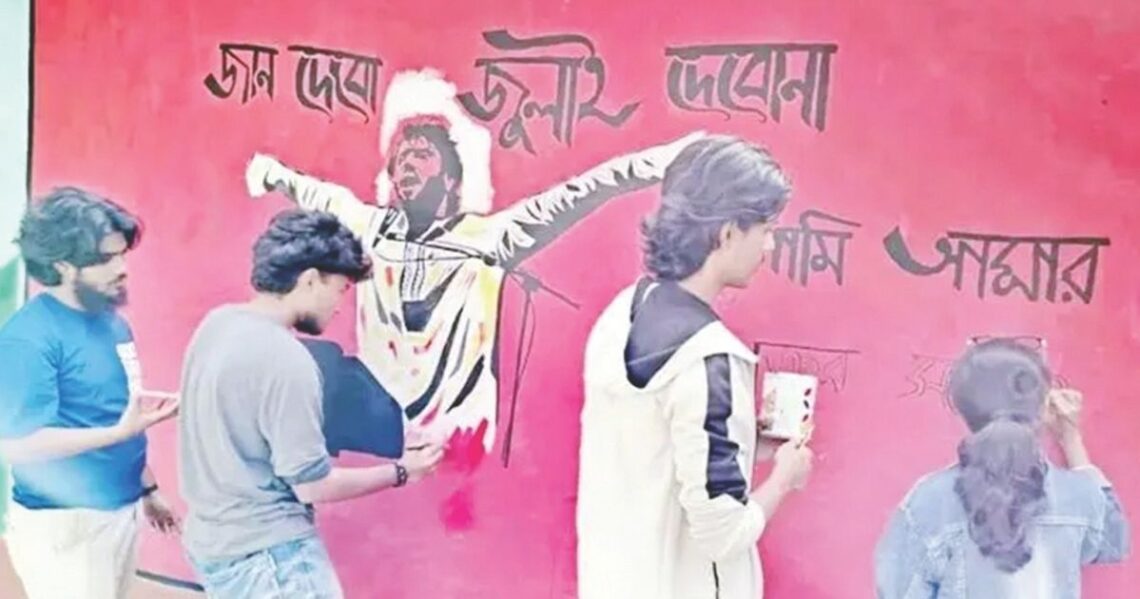 ঝালকাঠিতে হাদির স্মরণে দেওয়ালে দেওয়ালে গ্রাফিতি
