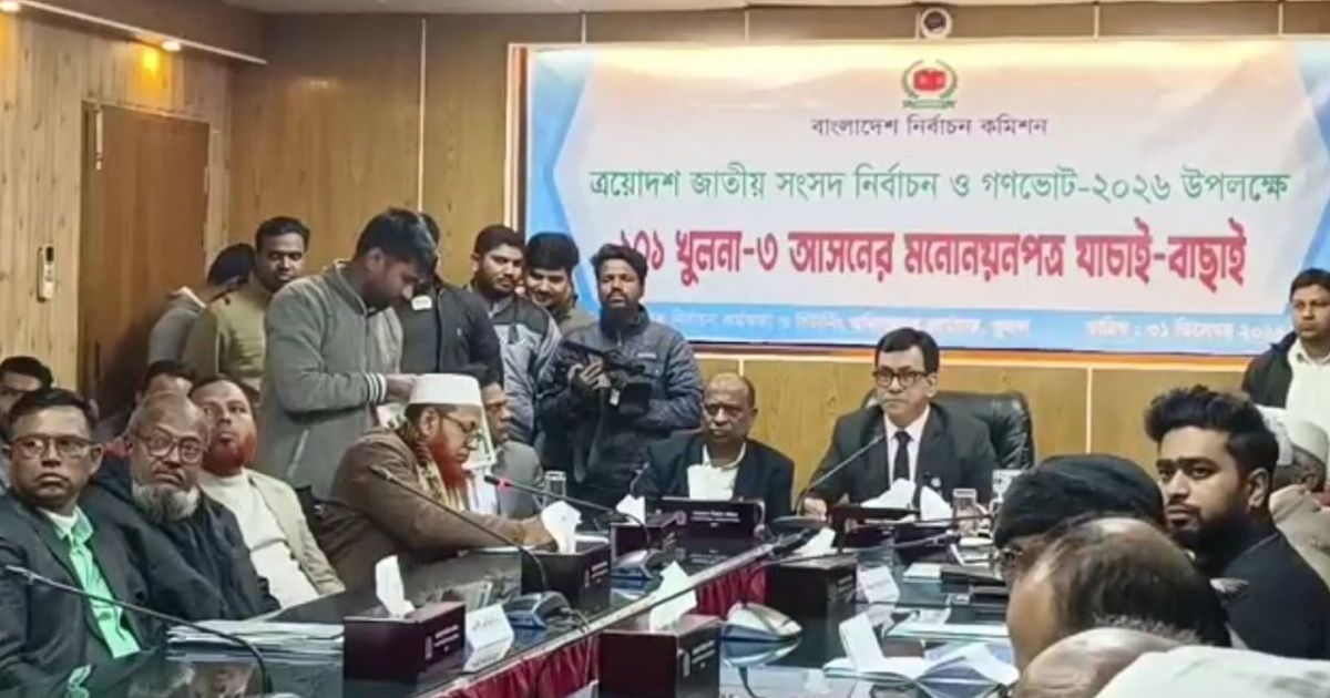 আগামী ত্রয়োদশ জাতীয় সংসদ নির্বাচনের জন্য প্রার্থিতা যাচাই-বাছাইয়ের প্রথম দিনেই খুলনা-৩ আসনে তিন স্বতন্ত্র প্রার্থীর মনোনয়নপত্র বাতিল ঘোষণা করা হয়েছে। আজ বুধবার (৩১ ডিসেম্বর) দুপুরে খুলনার আঞ্চলিক নির্বাচন কর্মকর্তা ও রিটার্নিং কর্মকর্তা ফয়সল কাদের এ সিদ্ধান্ত জানিয়েছেন। একই সঙ্গে এই আসনের অন্য নয়জন প্রার্থীকে বৈধ মনোনয়নপত্র দেওয়া হয়েছে।