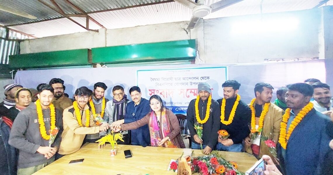 শেরপুরে বাংলাদেশ জাতীয়তাবাদী দল বিএনপিতে গুরুত্বপূর্ণ এক নতুন পদক্ষেপ নেওয়া হয়েছে। বৈষম্যবিরোধী ছাত্র আন্দোলনের প্রায় ৩০০ নেতা-কর্মী শেরপুর জেলা বিএনপিতে যোগদান করেছেন। এই দলীয় সদস্যপদ গ্রহণের আনুষ্ঠানিকতা পরিচালনা করেন আন্দোলনের শেরপুর জেলার প্রধান সমন্বয়ক ও মুখপাত্র ফারহান ফুয়াদ তুহিনের নেতৃত্বে। মঙ্গলবার (৬ জানুয়ারি) বিকাল তিনটার কাছাকাছি সময়ে শেরপুর জেলার বিএনপির প্রধান কার্যালয়ে এই যোগদান কার্যক্রম সম্পন্ন হয়।