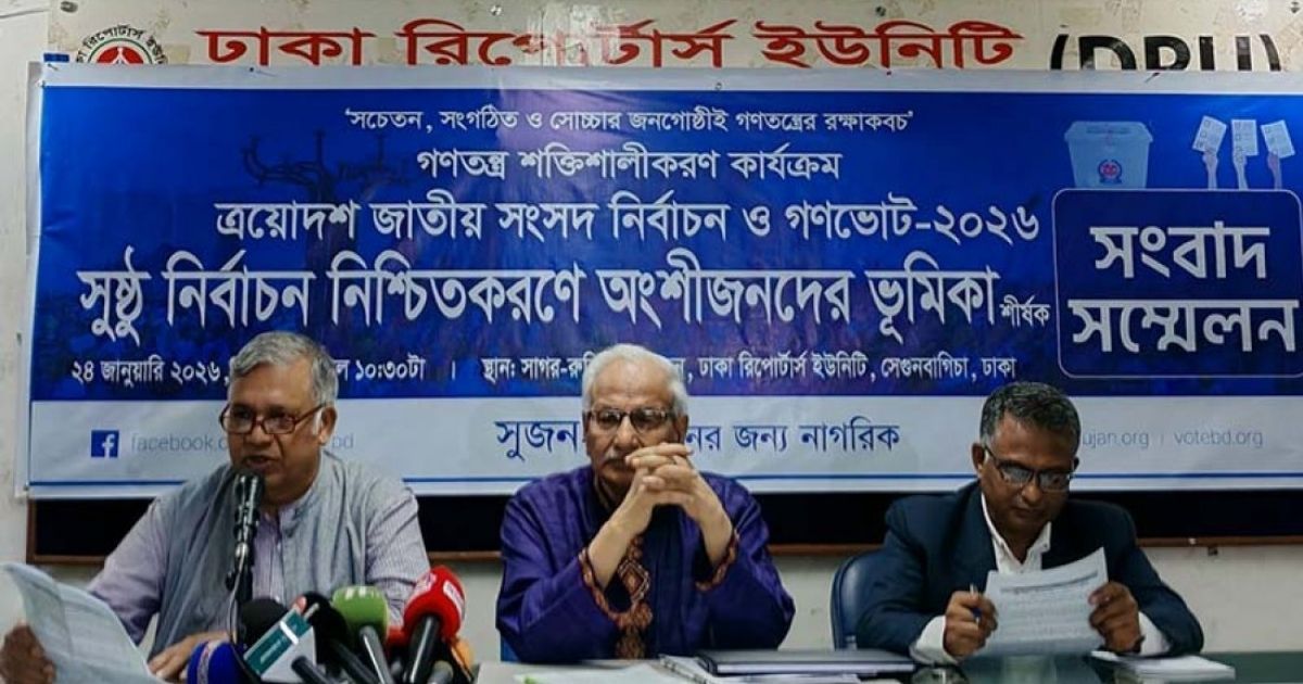 আসন্ন ত্রয়োদশ জাতীয় সংসদ নির্বাচন ও গণভোটের পরিস্থিতিতে একটি অবাধ, সুষ্ঠু ও অংশগ্রহণমূলক নির্বাচন সম্পন্ন করতে সবাইকে একযোগে কাজ করতে আহ্বান জানিয়েছে সুশাসনের জন্য নাগরিক (সুজন)। শনিবার (২৪ জানুয়ারি) ঢাকা রিপোর্টার্স ইউনিটিতে আয়োজিত এক সংবাদ সম্মেলনে সুজনের পক্ষ থেকে এই বার্তা দেওয়া হয়। সংবাদ সম্মেলনে সুজনের সম্পাদক বদিউল আলম মজুমদার বলেন, নির্বাচনের স্বচ্ছতা ও শুদ্ধতা রাখতে প্রধান দায়িত্ব মূলত নির্বাচন কমিশনের। তবে স্বাভাবিক ও সফল নির্বাচনের জন্য সরকার, রাজনৈতিক দল, আইনশৃঙ্খলা রক্ষাকারী বাহিনী, গণমাধ্যম ও ভোটাররা সবাইকে সম্মিলিত প্রচেষ্টা চালাতে হবে। তিনি emphasise করে বলেন, একটি সুষ্ঠু নির্বাচন শুধু নির্বাচন কমিশনের একার দায়িত্ব নয়, বরং এর জন্য দেশের প্রতিটি অংশীজনের সক্রিয় ভূমিকা অপরিহার্য। সবাইকে একসাথে দায়িত্বশীল আচরণ করে অবাধ, নিরপেক্ষ ও শান্তিপূর্ণ নির্বাচন নিশ্চিত করতে হবে।