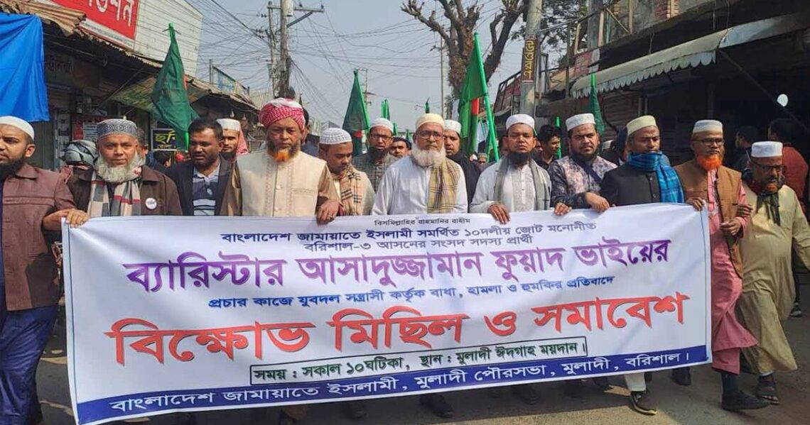 জামায়াতের নেতা মো. আরিফ হোসেন অভিযোগ করেন, ঈগল প্রতীকে ১০ দলে যুক্ত ঐক্যজোটের প্রার্থী ব্যারিস্টার আসাদুজ্জামান ফুয়াদের নির্বাচনী প্রচারণায় বাধা দেওয়ার পাশাপাশি তার ওপর হামলা চালানো হয়। তিনি বলেন, এ সময় ধানের শীষ প্রতীকের সমর্থকরা হামলা চালায়, নেতাকর্মীদের মারধর করে এবং প্রাণনাশের হুমকি দেয়।