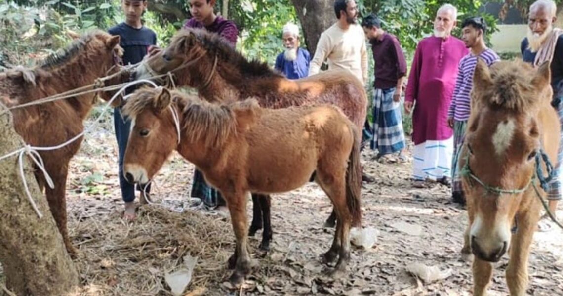 গাজীপুরের কাপাসিয়া উপজেলার দুর্গাপুর ইউনিয়নের মাশক এলাকায় গভীর রাতে ঘোড়া জবাইয়ের এক চাঞ্চল্যকর ঘটনা ঘটে। শনিবার (২৩ জানুয়ারি) মধ্যরাতে এলাকাবাসীর দায়িত্বশীল ও সতর্ক আঙুলের তথ্যের ভিত্তিতে পুলিশ একটি পরিত্যক্ত গরুর খামারে অভিযান চালিয়ে ৮টি জবাই করা ঘোড়ার মাংস এবং ১১টি জীবিত ঘোড়া উদ্ধার করে। তবে ঘটনাস্থলে পুলিশ পৌঁছানোর আগেই অপরাধী চক্রের মূল হোতারা সতর্কতা স্বরূপ পালিয়ে যেতে সক্ষম হয়। ধারণা করা হচ্ছে, এই চক্রটি একটি ঘোড়া ব্যবসায়ীর সঙ্গে জড়িত, যারা অসৎ উদ্দেশ্য ও লাভলোভের জন্য রাতের আঁধারে এই অপকর্মের পরিকল্পনা করেছিল। এলাকার সচেতন নাগরিকরা এই বিচ্ছিন্ন ঘটনা নিয়ে ব্যাপক আলোচনা করছে এবং পুলিশি তৎপরতার জন্য প্রশংসা করছে।