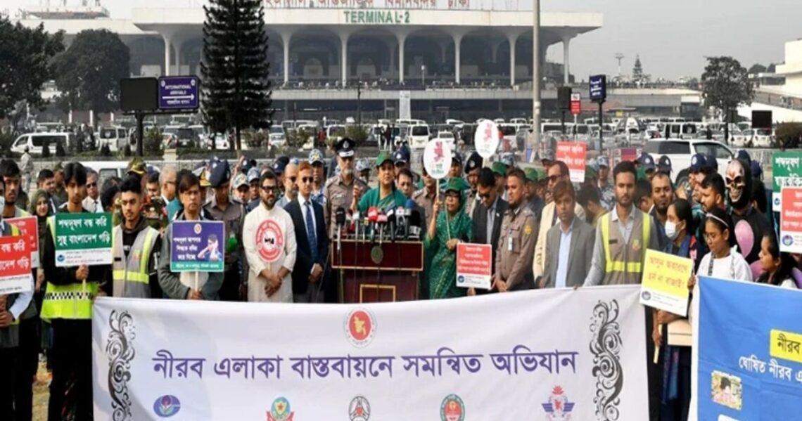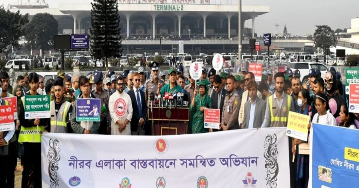 হযরত শাহজালাল আন্তর্জাতিক বিমানবন্দর এলাকাকে শব্দদূষণমুক্ত বা ‘নীরব এলাকা’ হিসেবে গড়ে তোলার লক্ষ্যে রবিবার (২৫ জানুয়ারি) পরিবেশ অধিদপ্তর, ঢাকা মহানগর পুলিশ (ডিএমপি), বিআরটিএ এবং ডিএনসিসির যৌথ উদ্যোগে একটি সচেতনতামূলক কর্মসূচি ও ভ্রাম্যমাণ আদালতের অভিযান পরিচালিত হয়।