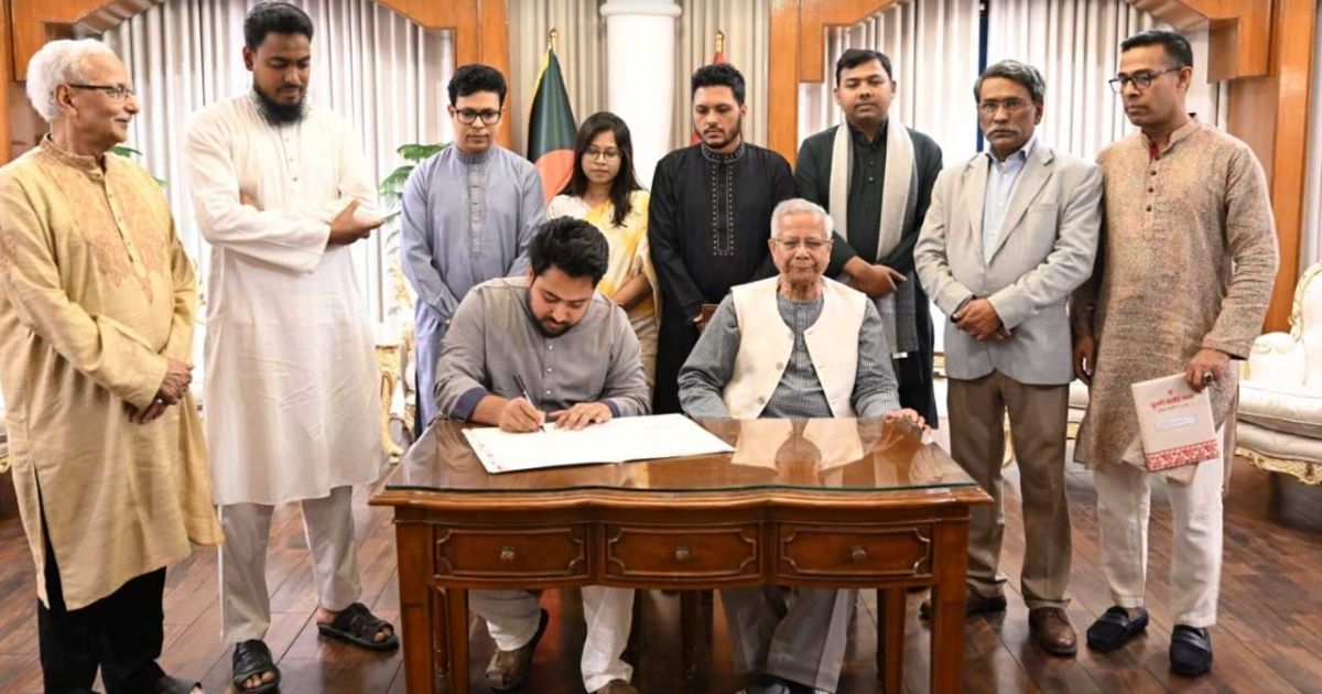 দলটির আহ্বায়ক নাহিদ ইসলাম ও সদস্য সচিব আখতার হোসেন নেতৃত্বে ছয় সদস্যের একটি প্রতিনিধি দল প্রধান উপদেষ্টার নিকট গিয়ে সনদে আনুষ্ঠানিক স্বাক্ষর করেন। এনসিপির পক্ষে স্বাক্ষর করেন আহ্বায়ক নাহিদ ইসলাম ও সদস্য সচিব আখতার হোসেন। অনুষ্ঠানে জাতীয় ঐকমত্য কমিশনের সহ-সভাপতি প্রফেসর আলী রীয়াজ, সদস্য বদিউল আলম মজুমদার ও প্রধান উপদেষ্টার বিশেষ সহকারী মনির হায়দার উপস্থিত ছিলেন।