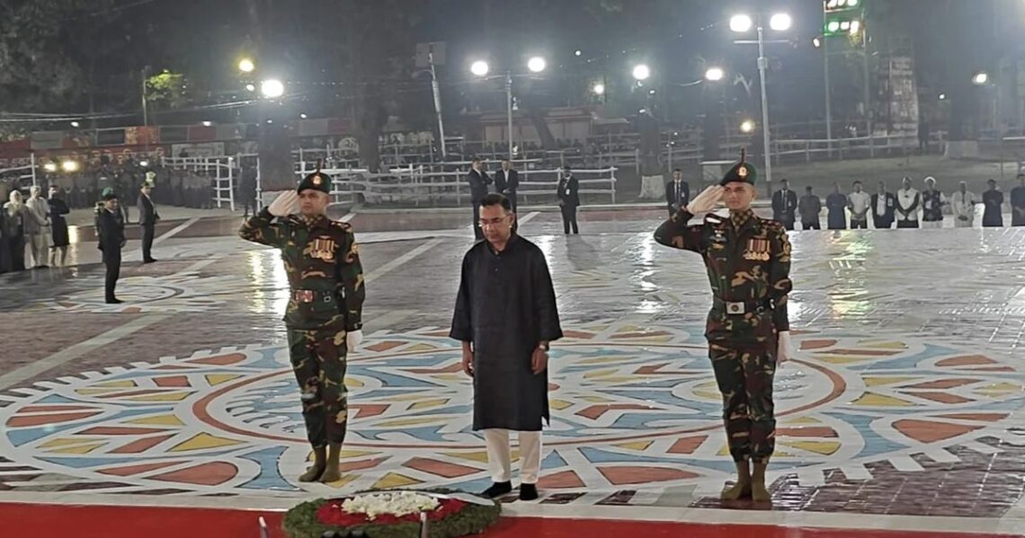 একুশের প্রথম প্রহরে কেন্দ্রীয় শহীদ মিনারে ফুল দিয়ে ভাষা শহীদদের প্রতি শ্রদ্ধা জানান প্রধানমন্ত্রী তারেক রহমান। দিবাগত রাত ১২টা এক মিনিটের পর তিনি শহীদ মিনারের বেদিতে পুষ্পস্তবক অর্পণ করেন।