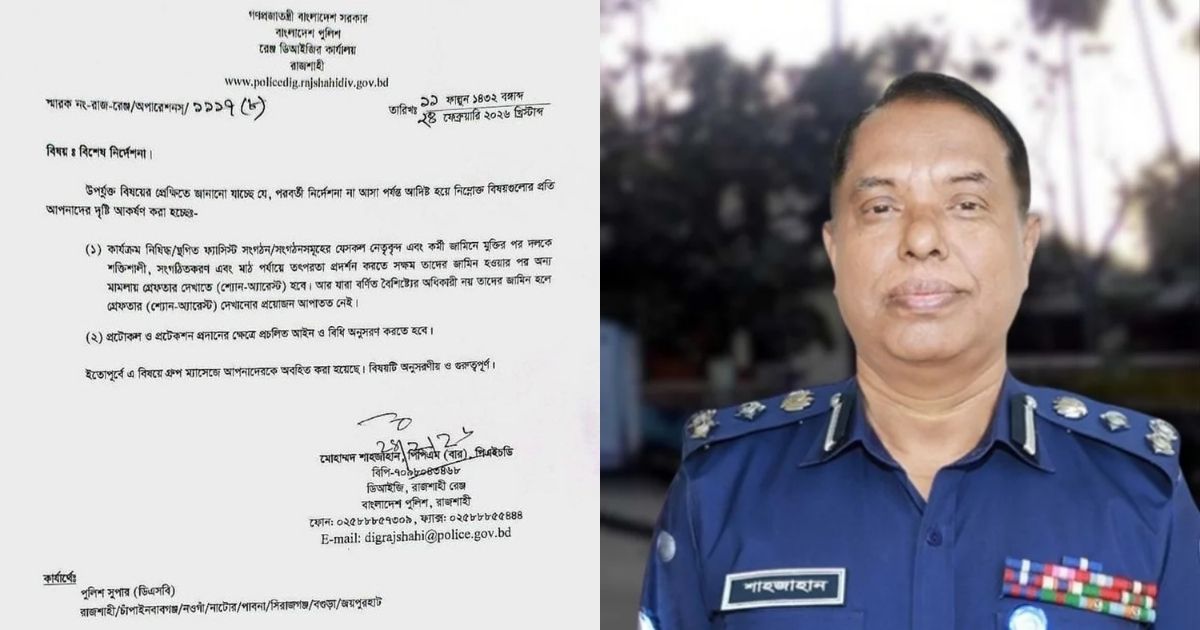ডিআইজি মোহাম্মদ শাহজাহান স্বাক্ষরিত ওই চিঠিতে বলা হয়, ‘পরবর্তী নির্দেশনা না আসা পর্যন্ত নিচের নির্দেশনা মান্য করতে হবে—