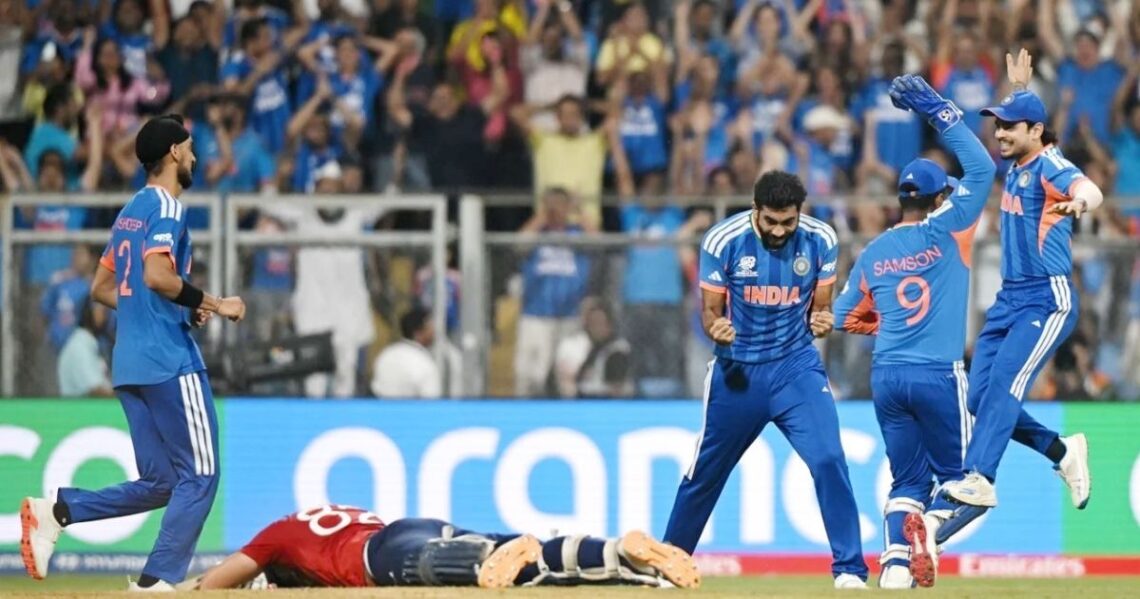 মুম্বাইয়ে নাটকীয় ম্যাচে ২৫৩ রানের বড় লক্ষ্য তাড়া করতে নেমে ইংল্যান্ড নির্ধারিত ২০ ওভারে ২৪৬/৭ করে থেমে যায়। ফলে ৭ রানের ব্যবধানে জয় তুলে ফিল ভারত, এবং টি-টোয়েন্টি বিশ্বকাপের ফাইনালে উঠল তারা।