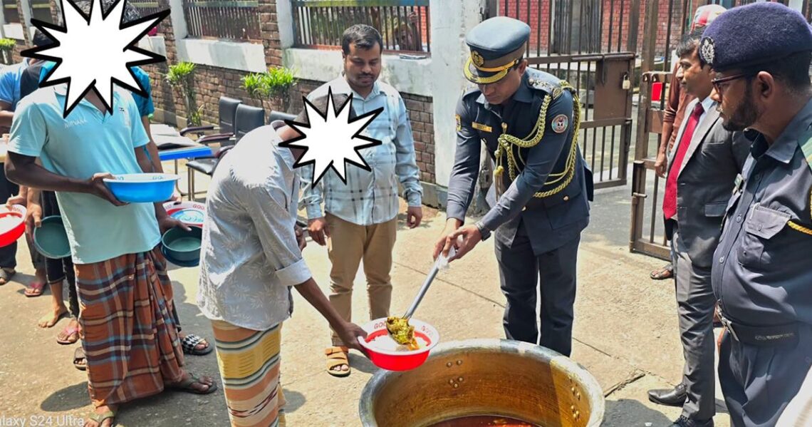 সকাল থেকে বিশেষ আয়োজন করা হয়। সবার খাবারের তালিকায় ছিল সুস্বাদু পায়েস ও মুড়ি। দুপুরে বন্দী ও স্টাফদের জন্য সার্ভ করা হয় পোলাও, গরুর মাংস, খাসির মাংস, মুরগীর রোস্ট, ডাল, সালাদ, মিষ্টি ও পান-সুপারি। রাতে মাছ, আলুর দম ও সাদা ভাত পরিবেশন করা হয় বলে জানিয়েছে জেলা কারাগারের কর্মকর্তা মোঃ আখেরুল ইসলাম।