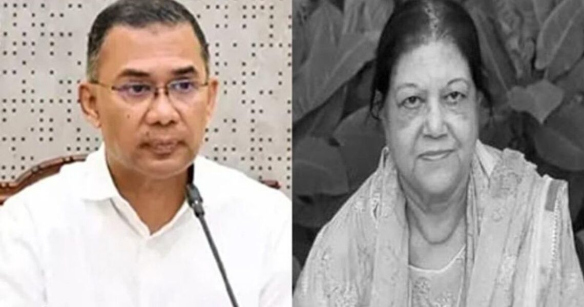 তারেক রহমান শোকবার্তায় মরহুমার পরিবারের প্রতি সমবেদনা জানিয়েছেন এবং তাঁর আত্মার শান্তি কামনা করেছেন।