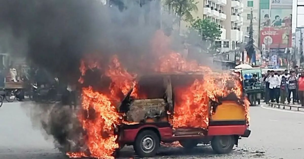 খুলনায় চলন্ত অ্যাম্বুল্যান্সে আগুন, গাড়ি পুড়ে ছাই