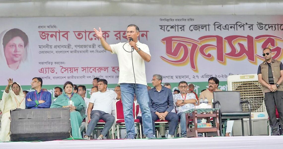 জনগণের শান্তি ও স্থিতিশীলতা বিঘ্নিত করার জন্য হরতাল ও অসৌজন্যমূলক আন্দোলনের মত কাজের সুযোগ যেন কোনও পক্ষ পায় সে ব্যাপারে স্পষ্ট জানিয়ে দিয়েছেন বিএনপি চেয়ারম্যান এবং প্রধানমন্ত্রী তারেক রহমান। তিনি বলেন, যারা ৭১ ও ২০০৮ সালে মানুষের বিভ্রান্তির মাধ্যমে ক্ষমতা দখলের অপচেষ্টা করেছিল, তারা এখনও ষড়যন্ত্রের জালবুননে লিপ্ত। তথাকথিত অপরাধীদের বিরুদ্ধে জনগণকে সতর্ক থাকতে হবে। দেশের ২০ কোটি মানুষের প্রতিটি হাতকে কাজে লাগিয়ে দেশকে গড়ে তুলতে হবে—অর্থাৎ মানুষের ভাগ্য উন্নয়নে সবাইকে একসঙ্গে কাজ করতে হবে। এভাবেই পরিবর্তন আনা সম্ভব বলে তিনি উল্লেখ করেন। সোমবার (২৭ এপ্রিল) বিকেলে যশোরের ঈদগাহ মাঠে জেলা বিএনপি আয়োজিত জনসভায় প্রধান অতিথি হিসেবে বক্তব্য রাখতে গিয়ে তিনি এসব কথা বলেন।