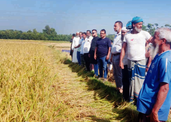 ফেনী জেলার ফেনী সদর উপজেলার পাঁচগাছিয়া ইউনিয়নের মাথিয়ারা গ্রামে কম্বাইন্ড হারভেস্টার মেশিনের মাধ্যমে দরিদ্র বর্গাচাষিদের ধান কাটা, মাড়াই ও ঘরে...