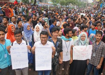 ঢাকার জিগাতলায় শিক্ষার্থীদের ওপর ছাত্রলীগ ও পুলিশের হামলার প্রতিবাদ ও নিরাপদ সড়কের দাবিতে ঢাকা-রাজশাহী মহাসড়ক অবরোধ করে রাজশাহী বিশ্ববিদ্যালয় (রাবি)...